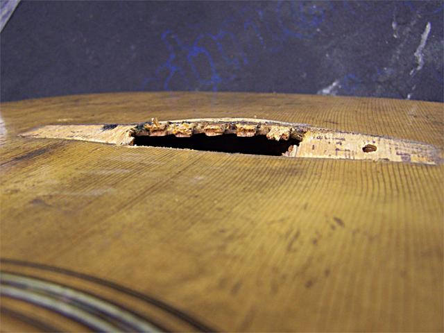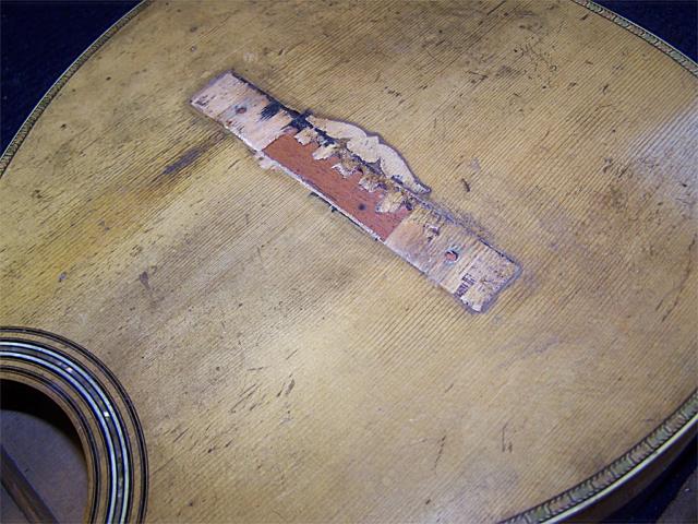 Repair of an 1850s Martin with top damage due to the use of steel strings