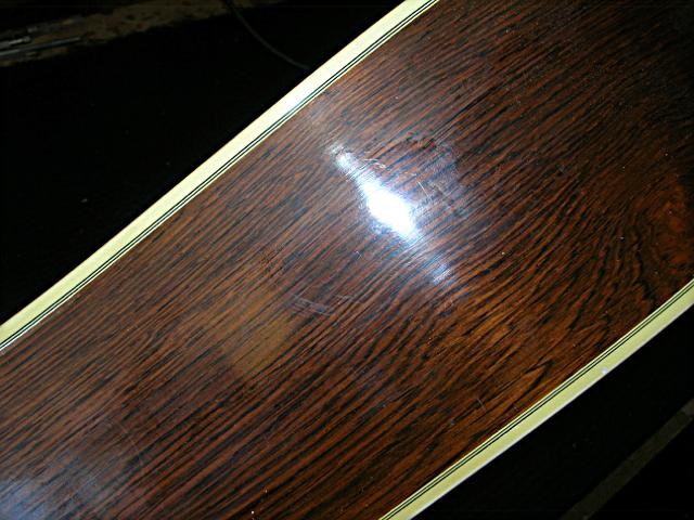 The finish work on this guitar was completed in February and by mid March the guitar was back in the hands of its owner. The entire guitar was given a