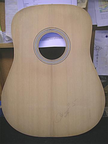 The final pics show the guitar body with the new (old) top with the old binding installed, ready to go to finish. As the top is old it has theright rosette and more importantly, 40 year old